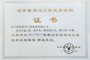 “葫蘆島三和恬園小區(qū)二期工程16#樓”榮獲2020年度遼寧省建設(shè)工程優(yōu)質(zhì)結(jié)構(gòu)稱號(hào)