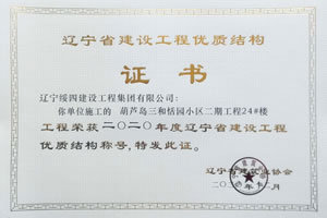 “葫蘆島三和恬園小區(qū)二期工程24#樓”榮獲2020年度遼寧省建設(shè)工程優(yōu)質(zhì)結(jié)構(gòu)稱號(hào)