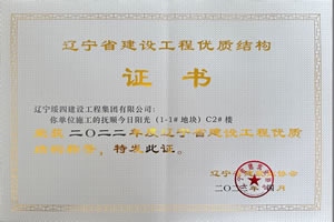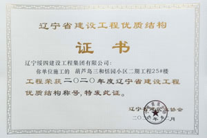 “葫蘆島三和恬園小區(qū)二期工程25#樓”榮獲2020年度遼寧省建設(shè)工程優(yōu)質(zhì)結(jié)構(gòu)稱號(hào)
