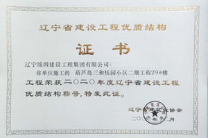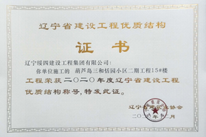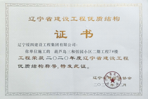 “葫蘆島三和恬園小區(qū)二期工程7#樓”榮獲2020年度遼寧省建設工程優(yōu)質(zhì)結構稱號