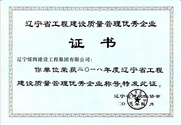 遼寧省工程建設質(zhì)量優(yōu)秀企業(yè)