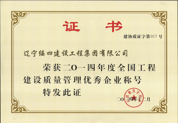 全國工程建設質(zhì)量管理優(yōu)秀企業(yè)
