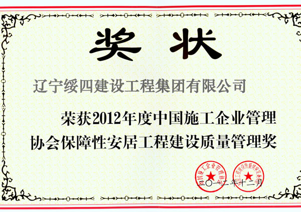 社會(huì)保障性安居工程建設(shè)質(zhì)量管理獎(jiǎng)