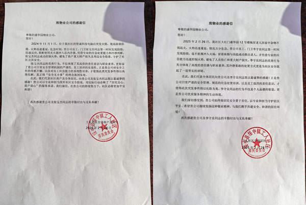 社區(qū)居委會在感謝信中指出,這兩次火災事故的成功化解,充分體現(xiàn)了盛華園物業(yè)公司日常嚴謹?shù)陌踩芾怼⒁?guī)范的應急處置培訓,以及員工強烈的責任意識。張寶杰同志和李守良同志的英勇行為不僅是個人品德的彰顯,更是盛華園物業(yè)公司優(yōu)質(zhì)服務精神的生動體現(xiàn)。社區(qū)居委會代表全體居民向盛華園物業(yè)公司及兩位同志致以最誠摯的感謝,并希望盛華園物業(yè)公司繼續(xù)發(fā)揚這種敬業(yè)精神,與社區(qū)攜手共建安全、和諧的居住環(huán)境。