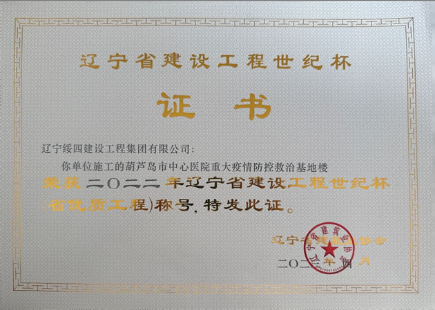 葫蘆島市中心醫(yī)院重大疫情防控救治基地樓榮獲 2022年度遼寧省建設(shè)工程世紀(jì)杯(省優(yōu)質(zhì)工程)稱號(hào)