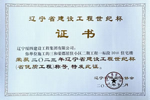 三和榮郡居住小區(qū)二期工程一標(biāo)段10#住宅樓 榮獲2023年遼寧省建設(shè)工程世紀(jì)杯(省優(yōu)質(zhì)工程)稱號